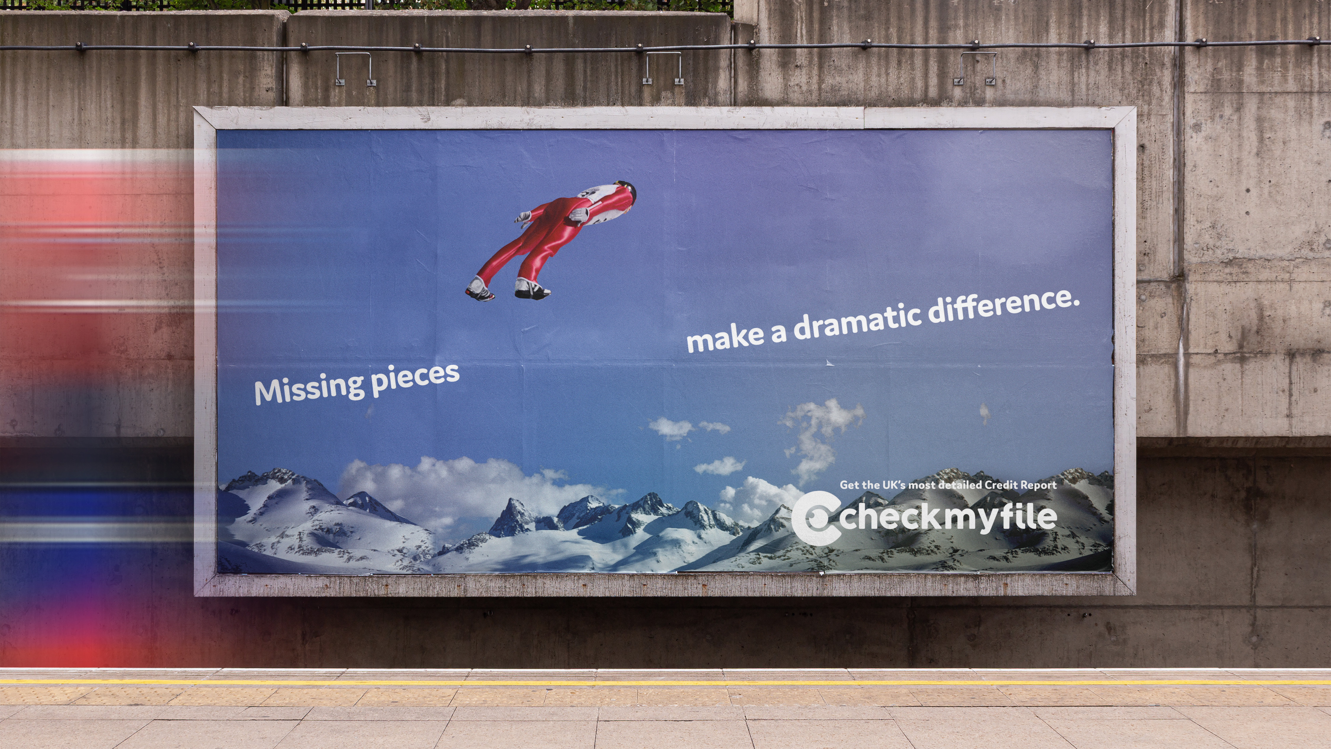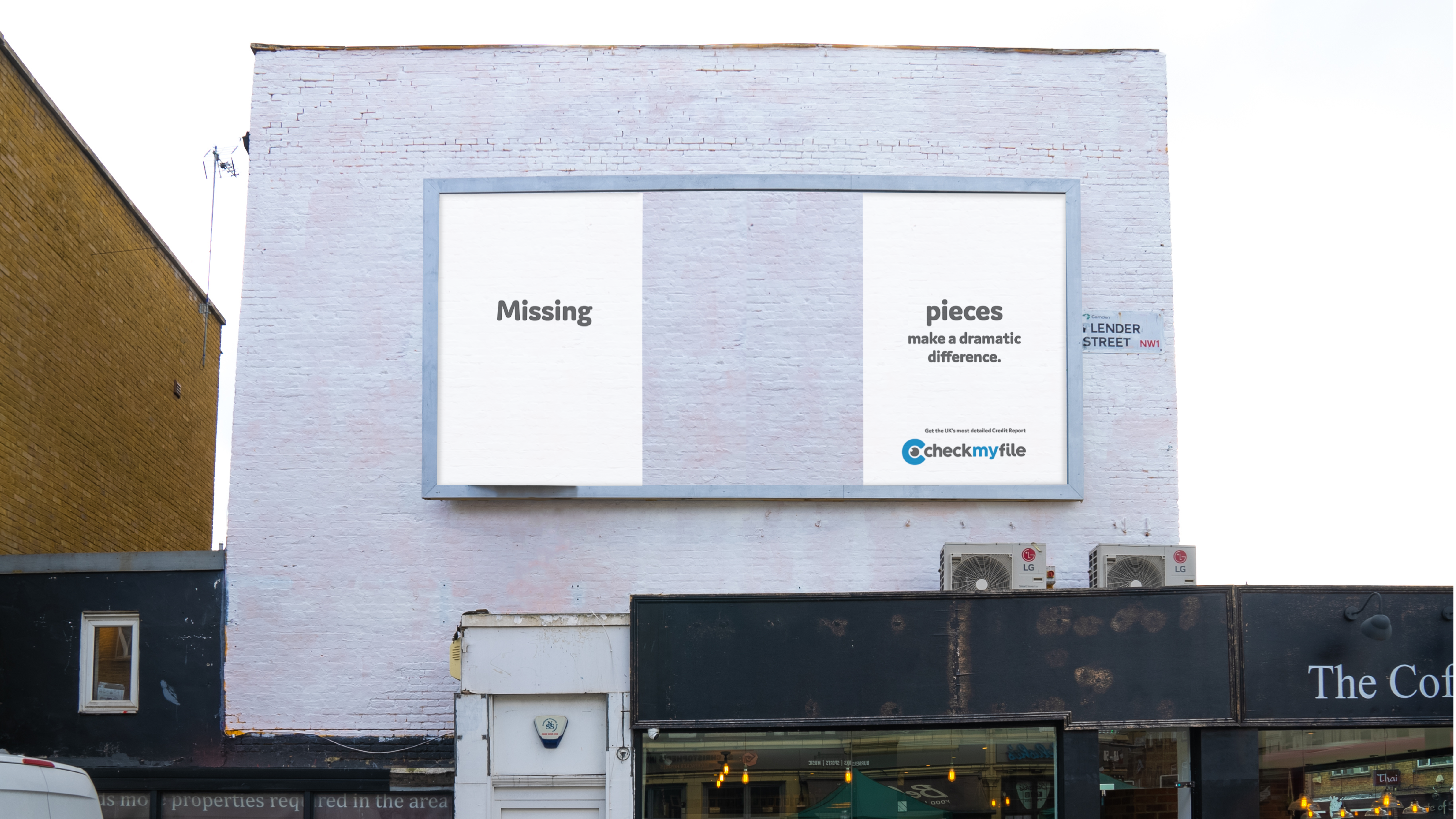 I developed a bold new brand campaign and OOH concept for Check My File—built around a simple truth: they're the only credit scoring company that checks data from all four major credit agencies. The creative idea played on the danger of missing pieces, visualising what other credit reports leave out.
