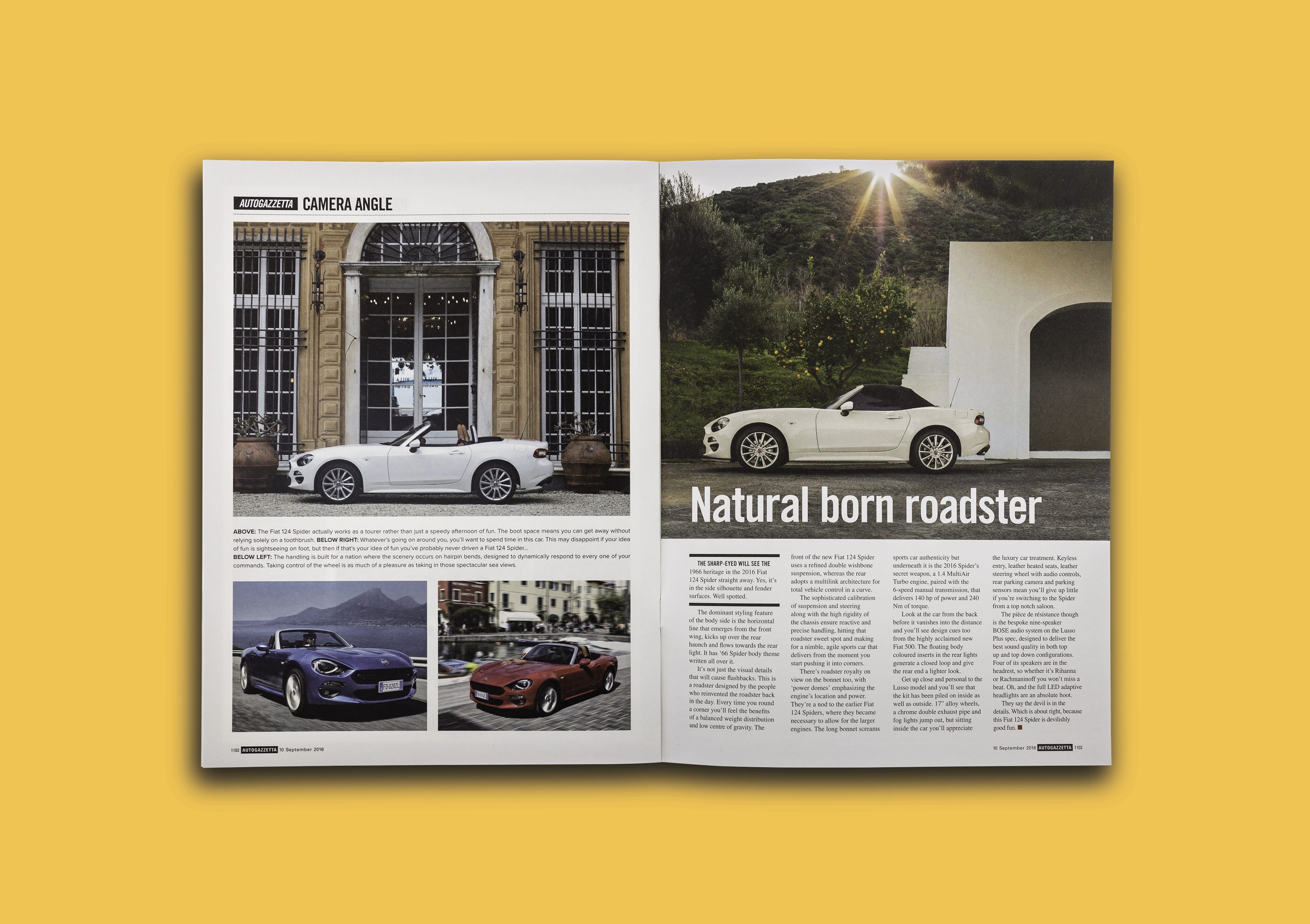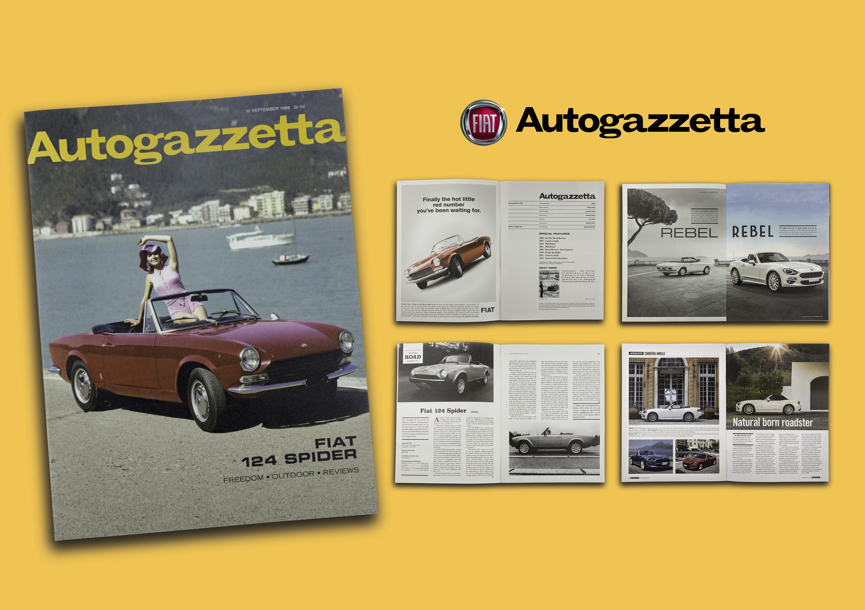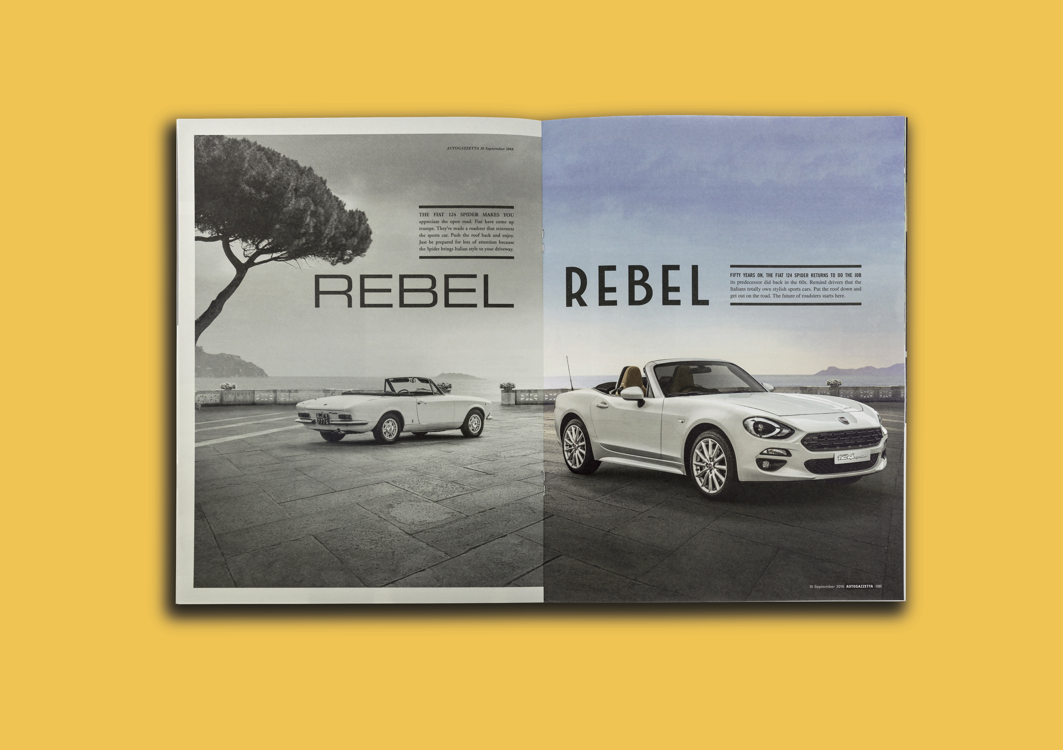 Then, at the centre spread, we jumped forward 50 years—switching up the tone and visual style to spotlight the sleek, modern 2016 model.