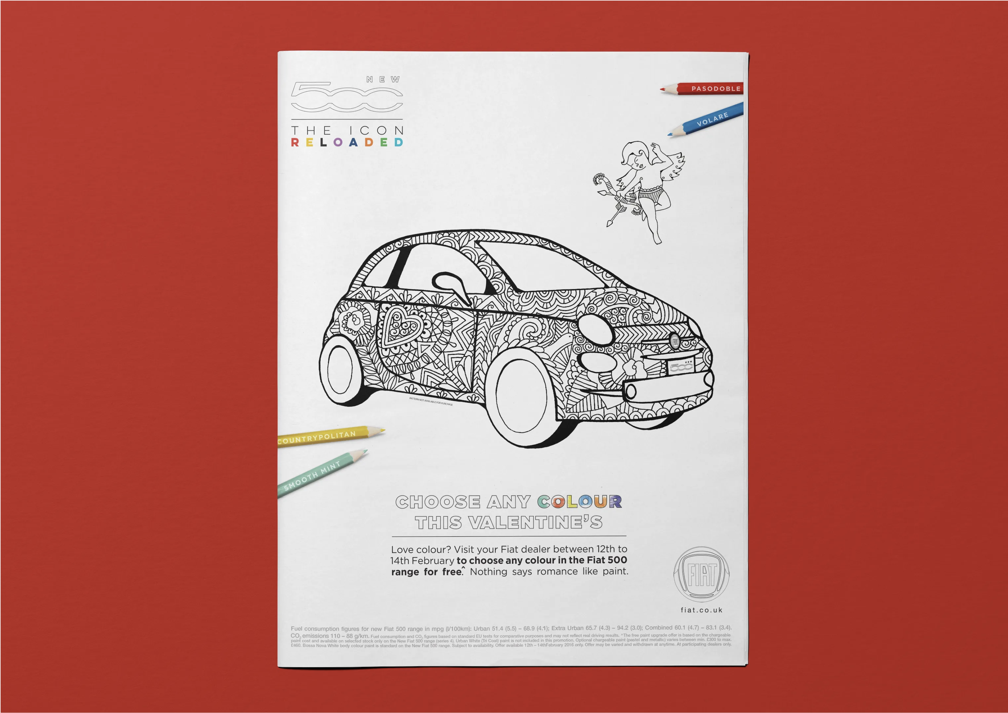 I noticed that colouring books were making a comeback. Leveraging this trend, I crafted bespoke press ads and a DM pack that customers could colour in themselves.