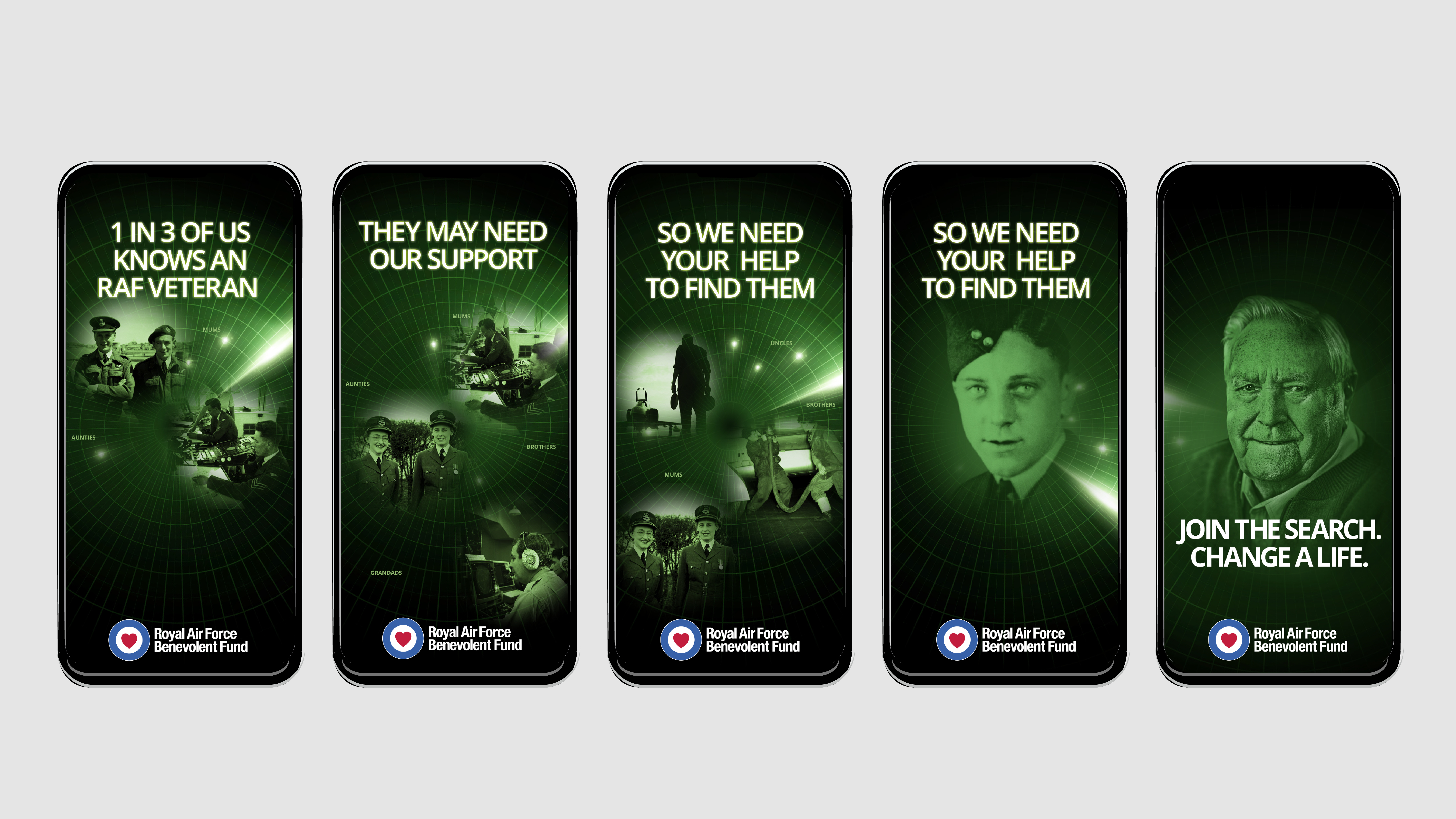 I created a recognisable visual motif—the RAF’s original green RADAR—and used it to get the public scanning, spotting, and sharing.